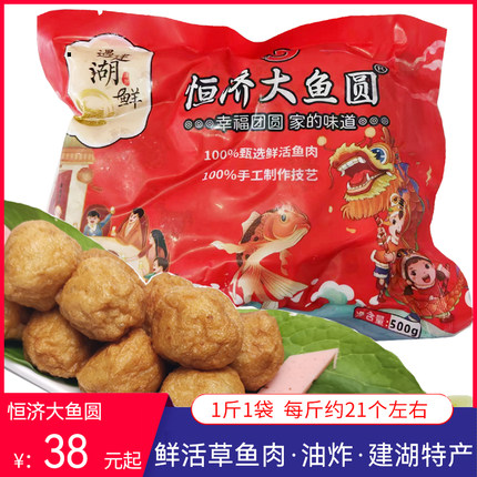 建湖恒济大鱼圆淡水草鱼肉圆手工实心火锅鱼丸商用冻鱼滑油炸小吃