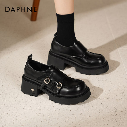 达芙妮厚底乐福鞋女2025新款女鞋秋季百搭粗跟单鞋英伦风小皮鞋女