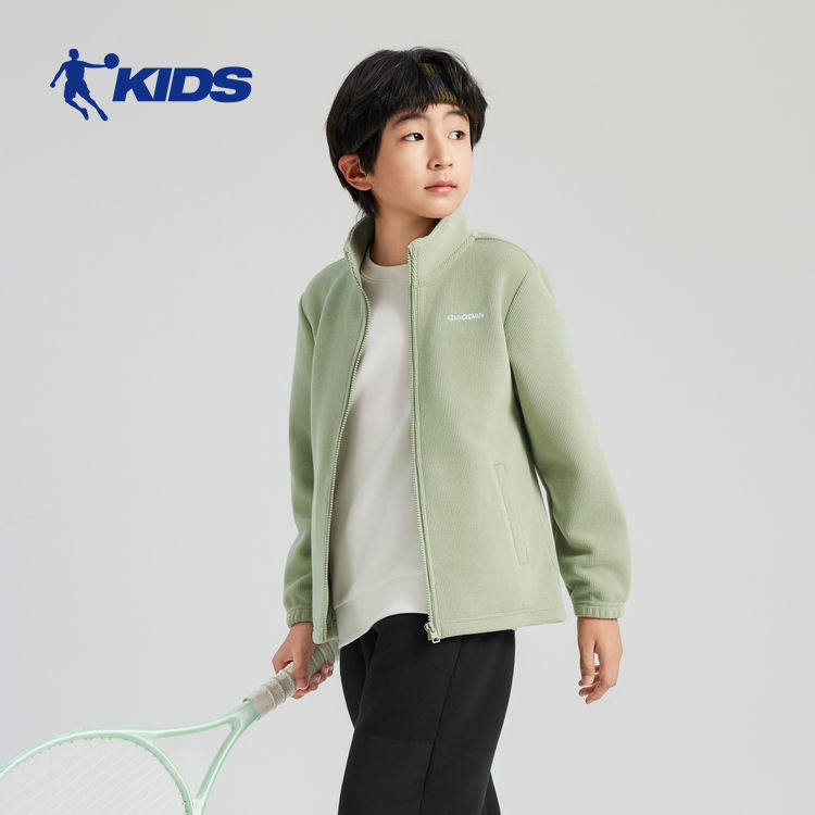 乔丹儿童外套男童女童2025秋冬立领摇粒绒保暖运动上衣拉链开衫