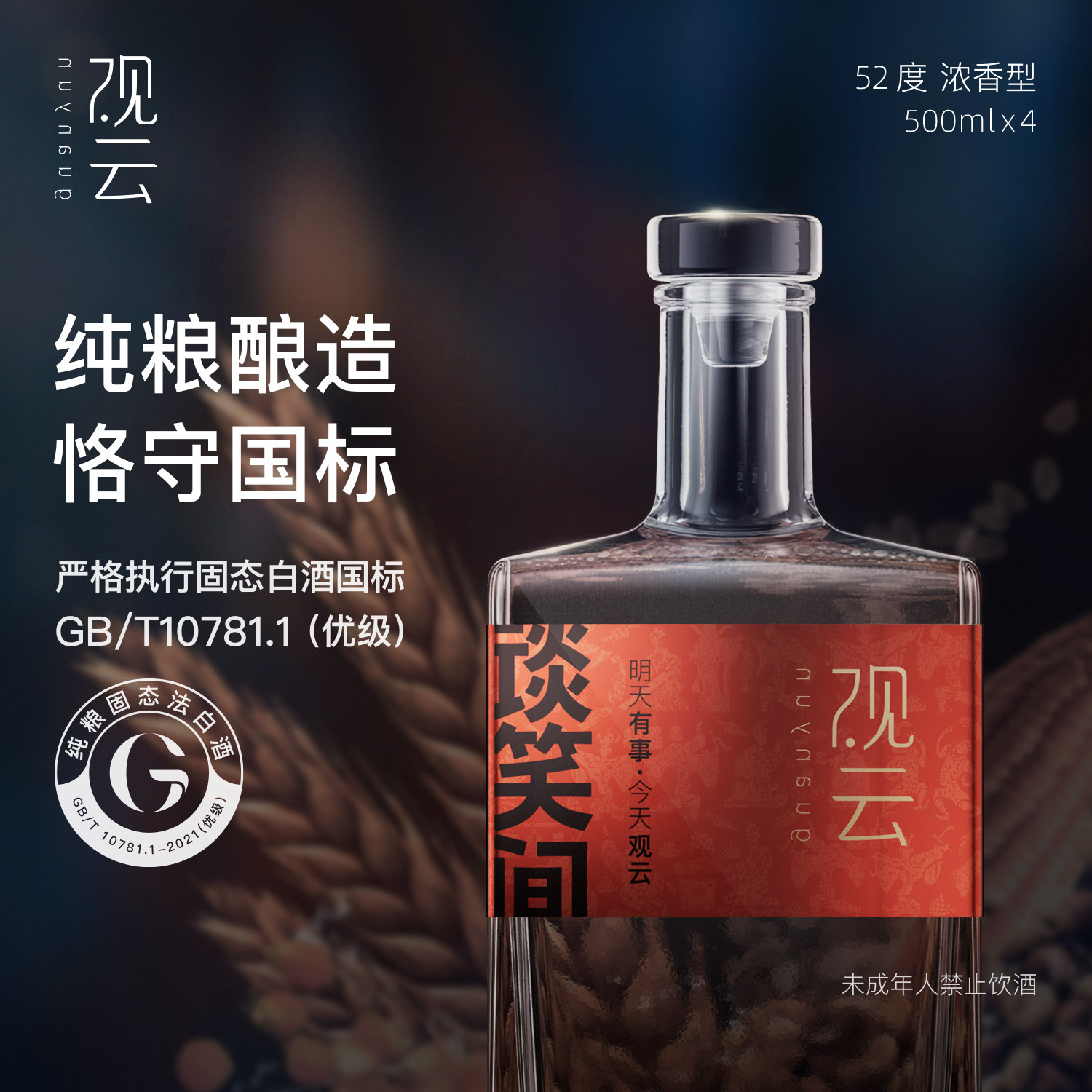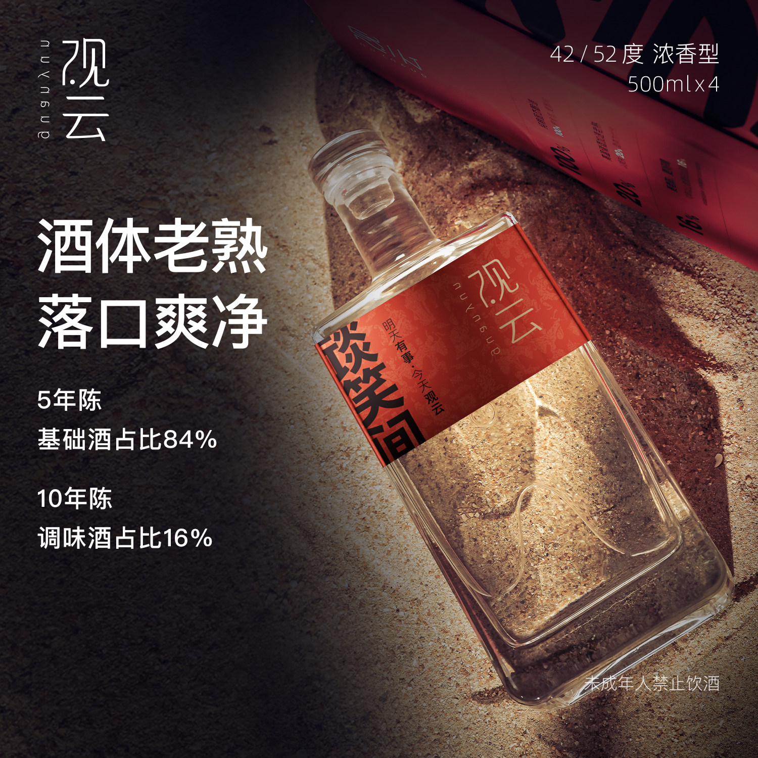 观云红标谈笑间42/52度浓香白酒500ml*4瓶纯粮食白酒自饮节日送礼