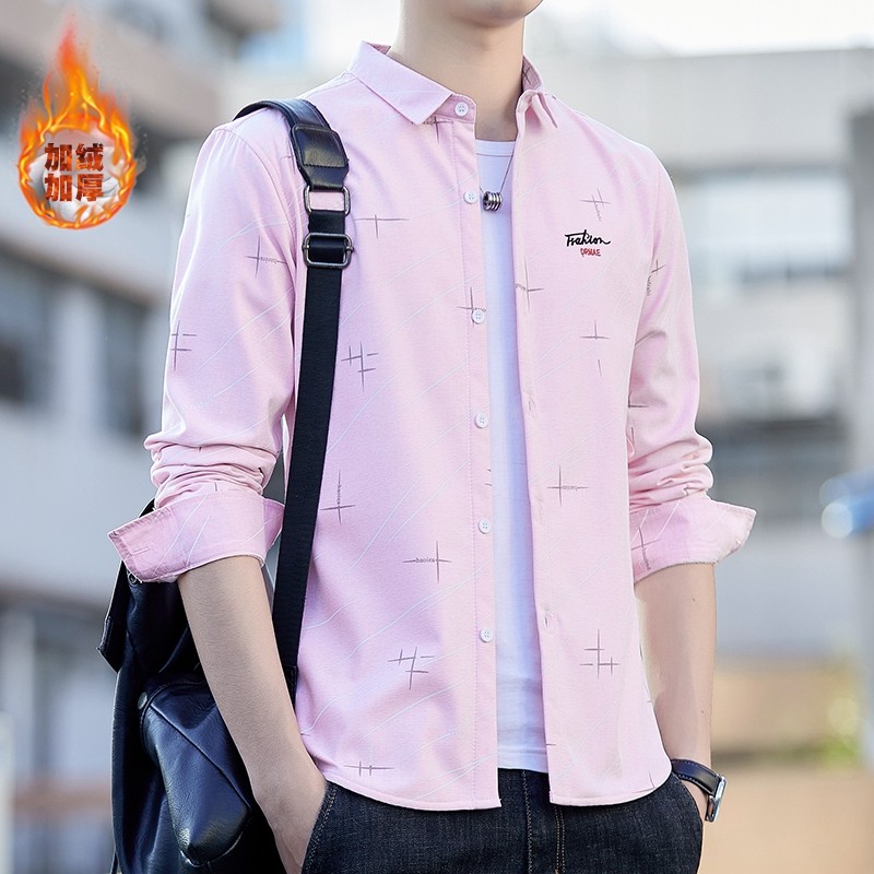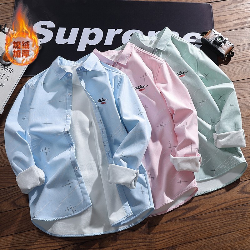 冬季加绒衬衫男士长袖寸衫韩版修身外套青年加棉加厚休闲保暖衬衣