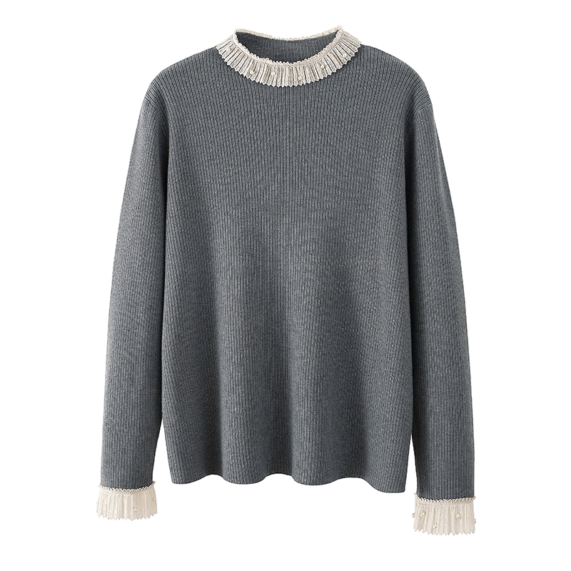 蕾丝花边钉珠假两件毛衣针织打底衫女秋冬装大码胖mm显瘦叠穿上衣