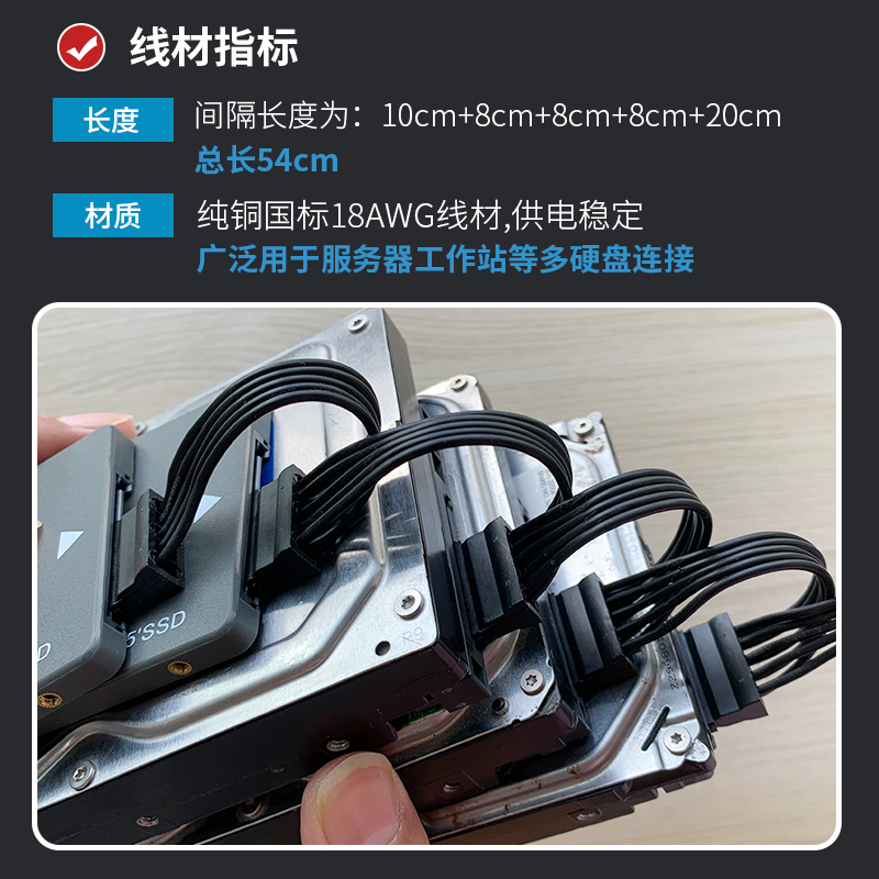 SATA电源线1分2/3/4/5/6 固态机械硬盘扩展线 电脑一分多供电转接