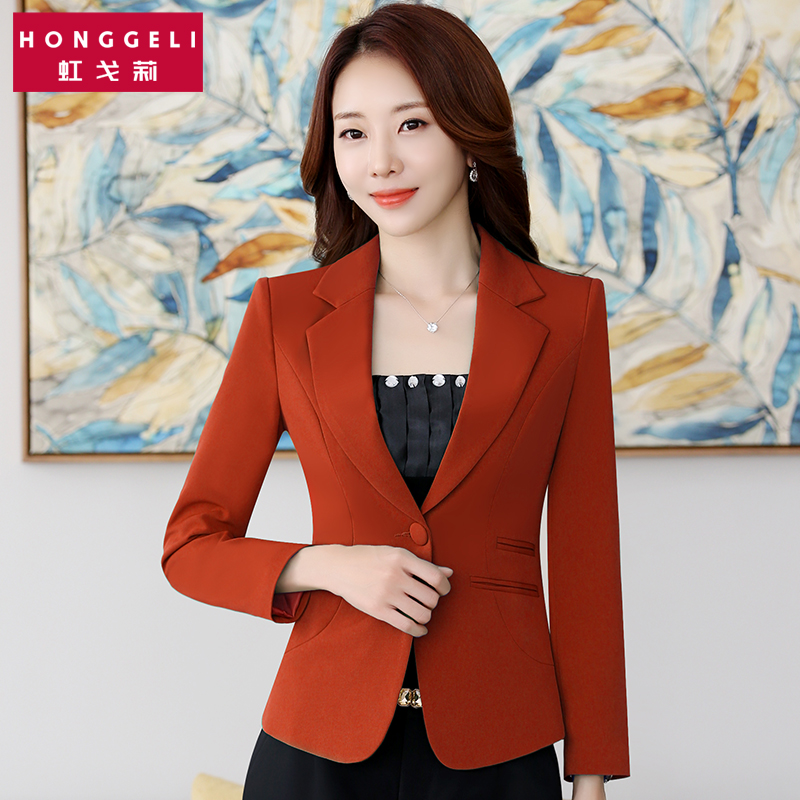 红色小西装外套女修身2024新款女士春秋季上衣短款气质休闲小西服