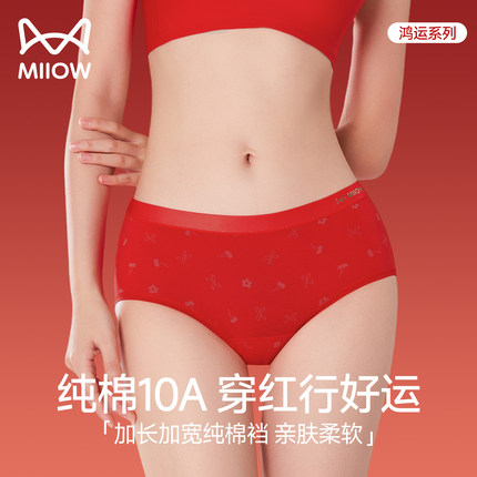 猫人本命年内裤女士纯棉抗菌加长全棉裆马年结婚红色少女生三角裤