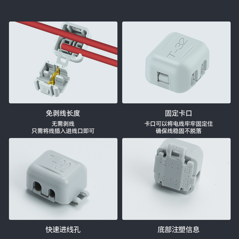 迷你T型免破线接线端子冷压快速连接器0.2-1.5mm²平方小型分线器
