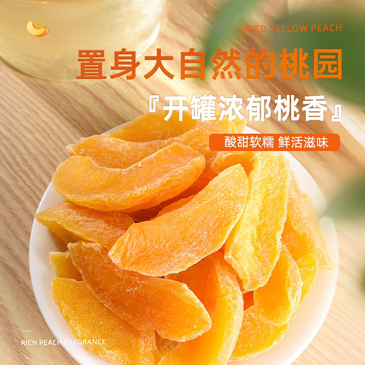 黄桃干500g果脯罐装桃子果干桃肉小零食水果干散装桃片蜜饯桃脯
