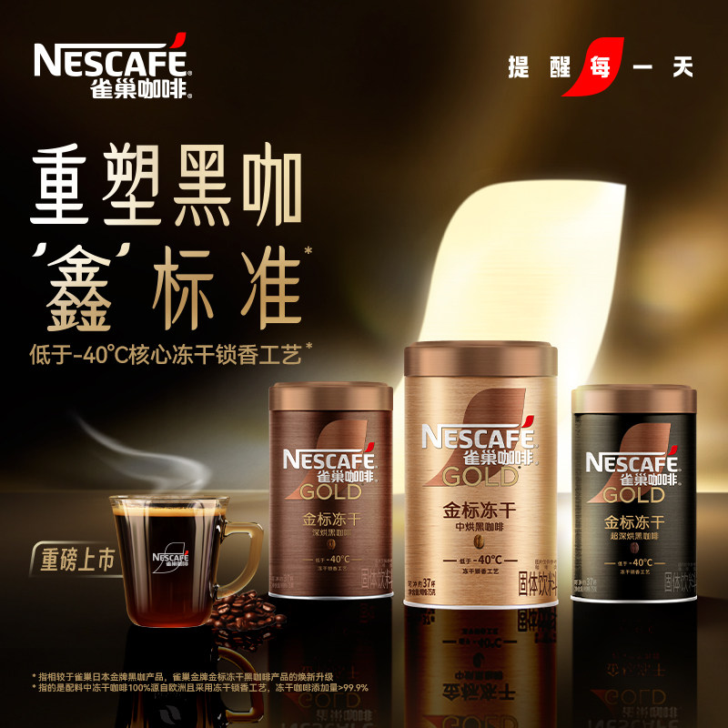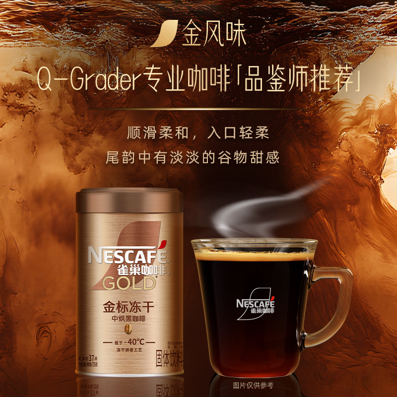 雀巢咖啡金牌金标美式冻干黑咖啡罐装75g速溶咖啡粉官方旗舰店