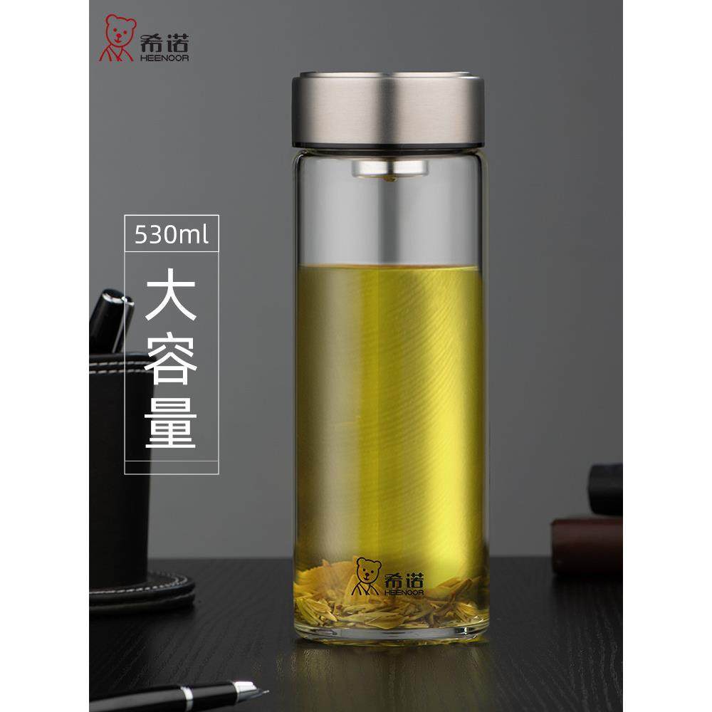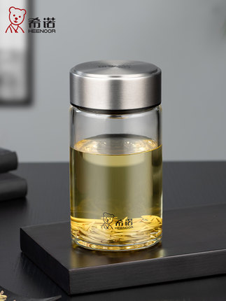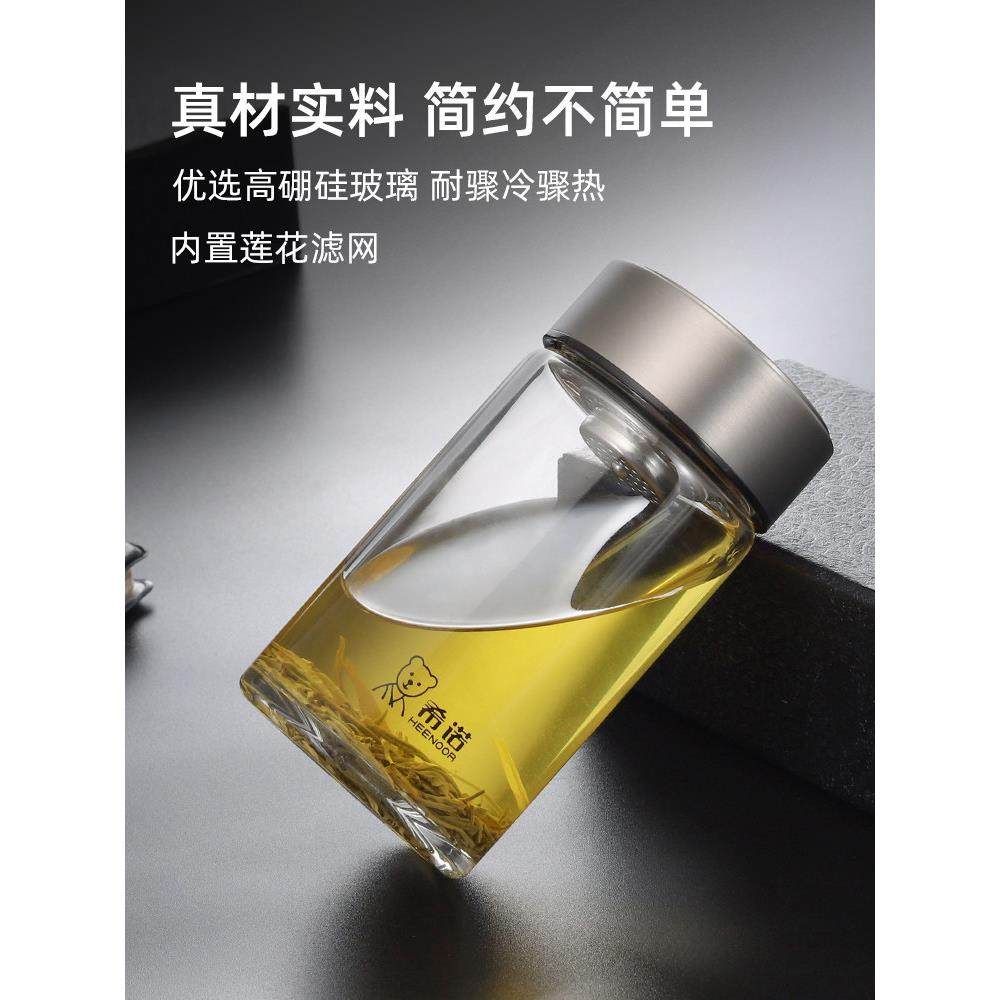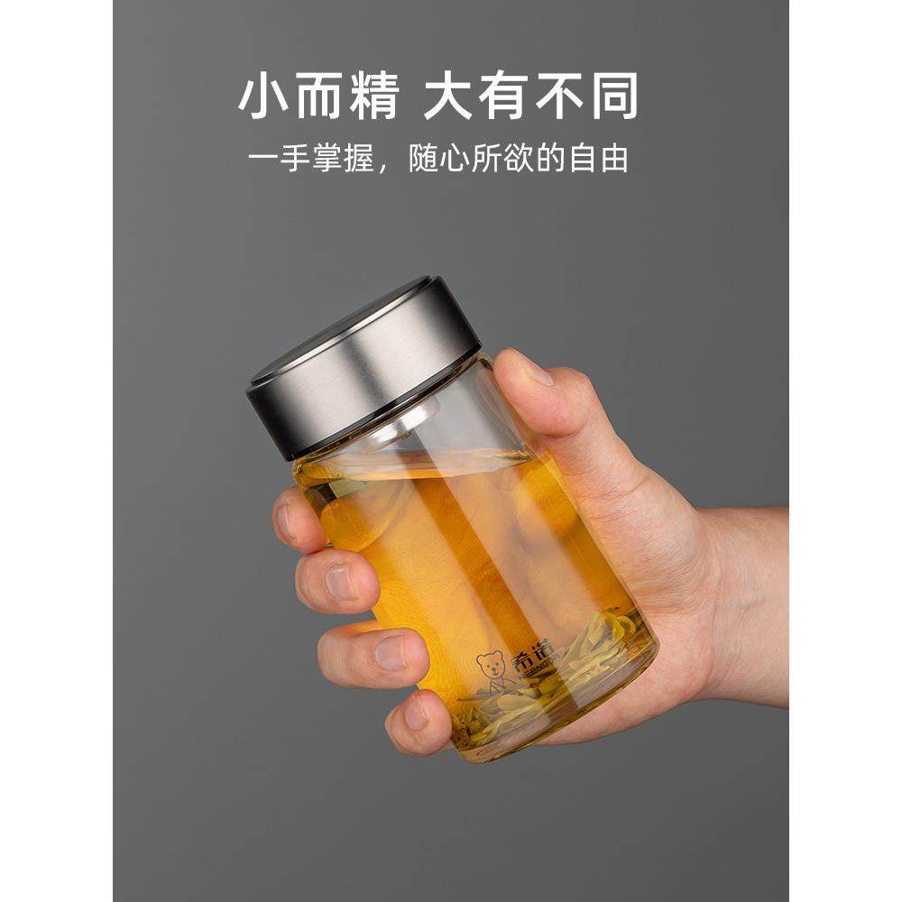 希诺玻璃杯单层矮胖便携小杯子女家用泡茶杯2024新款男士高端水杯
