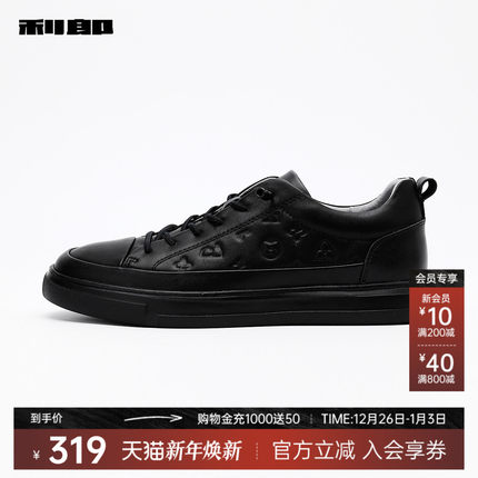 【牛皮革】 利郎奥莱休闲板鞋男士2025冬季新款质感压花防滑鞋子