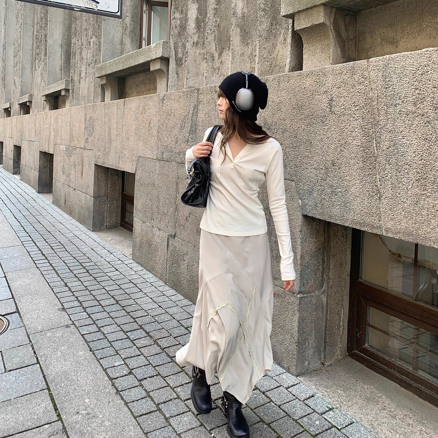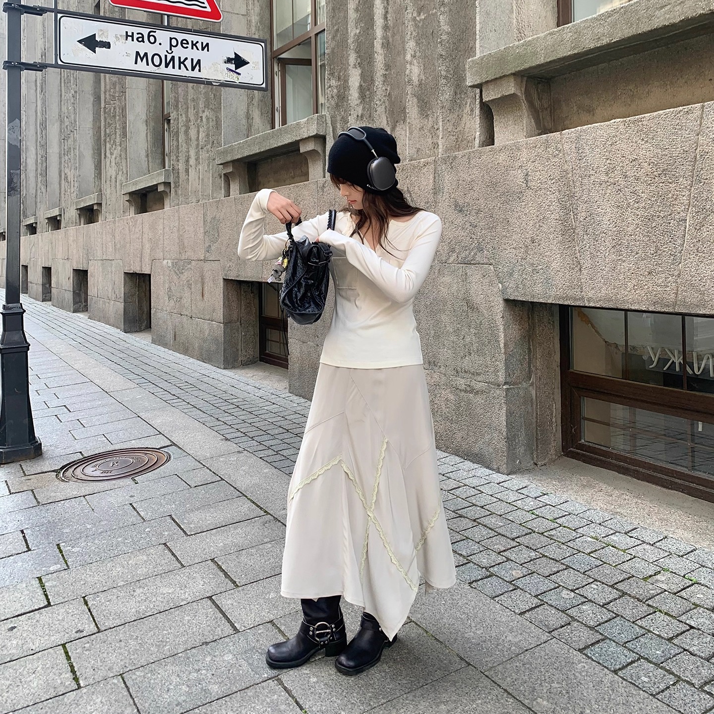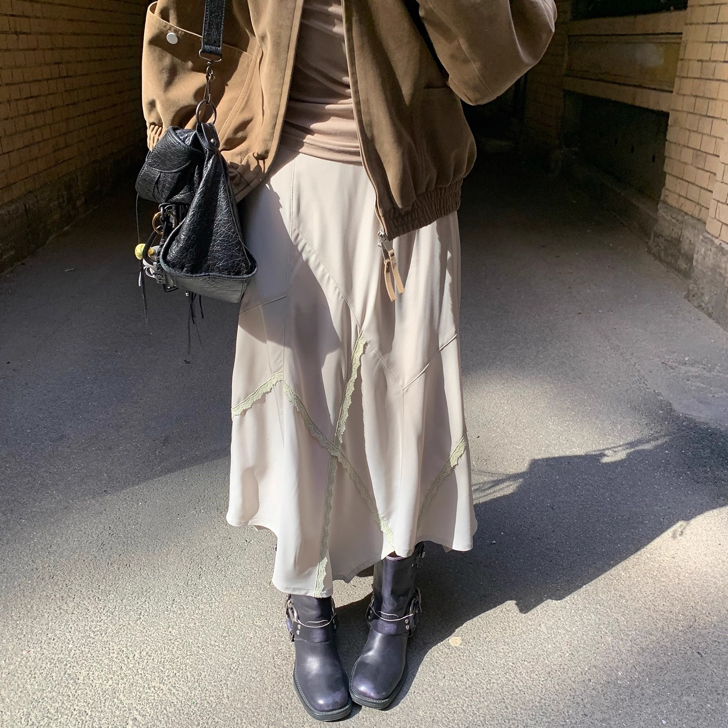 KERNEL COSMOS 旷野诗人 重工时髦拼接蕾丝不规则下摆分割半身裙