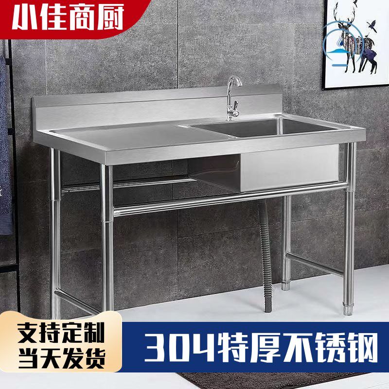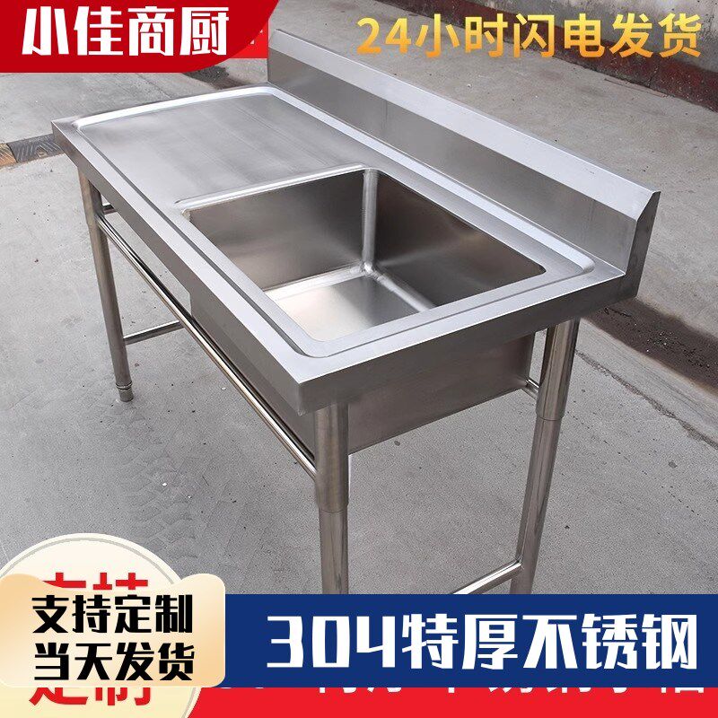 304加厚不锈钢k水槽厨房商用饭店洗衣台洗菜盆带平台洗刷盆洗碗池