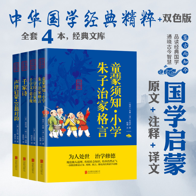 4册 三字经百家姓千字文弟子规合集+千家诗+声律启蒙笠翁对韵+童蒙须知 国学经典书籍 国学启蒙书籍中小学生课外阅读书籍 畅销书
