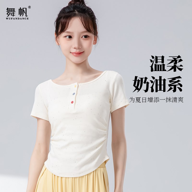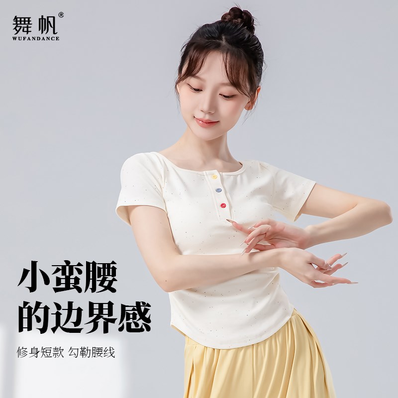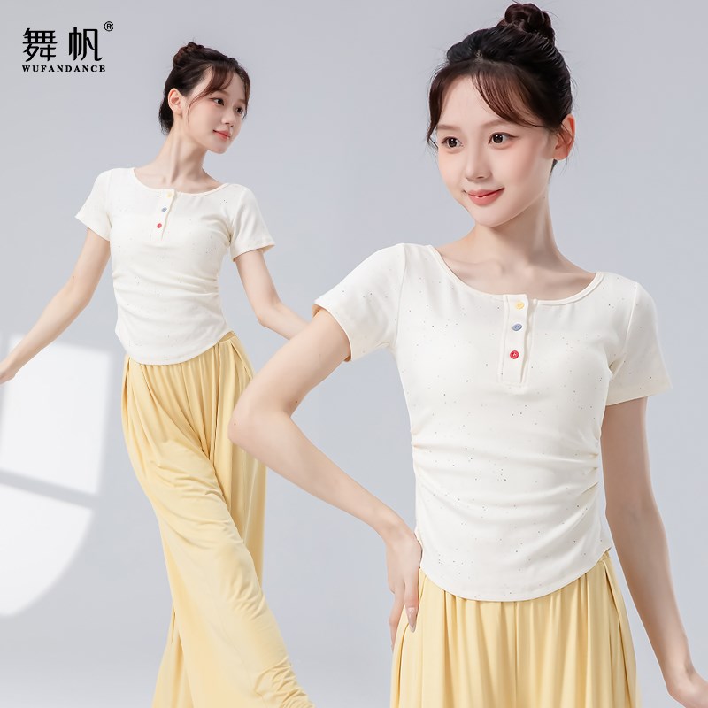 舞蹈上衣女款新款练功服白色夏季短袖练功裤形体训练服百搭日常款