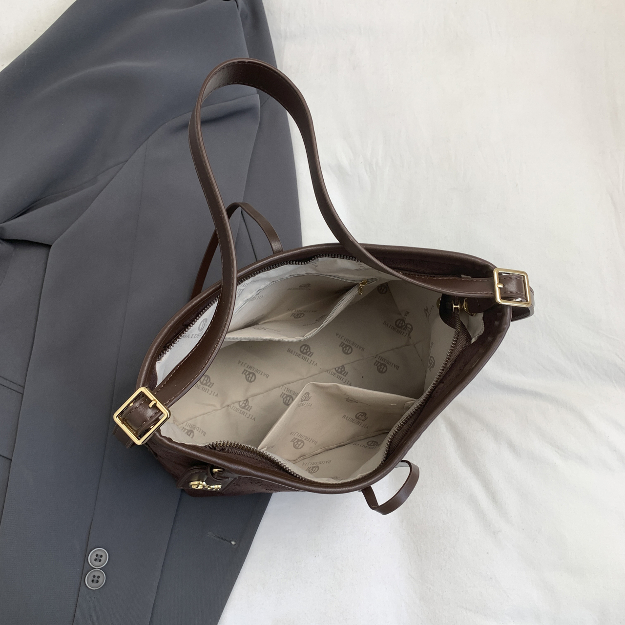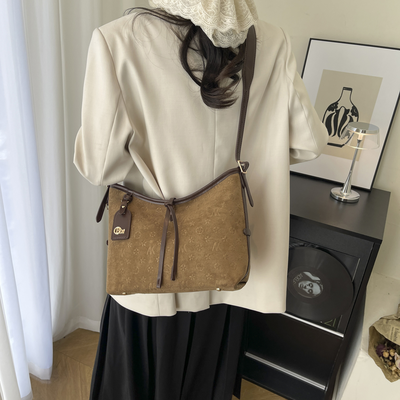 包包轻奢小众高级感女式2025新款秋冬麂皮绒压花托特包单肩斜挎包