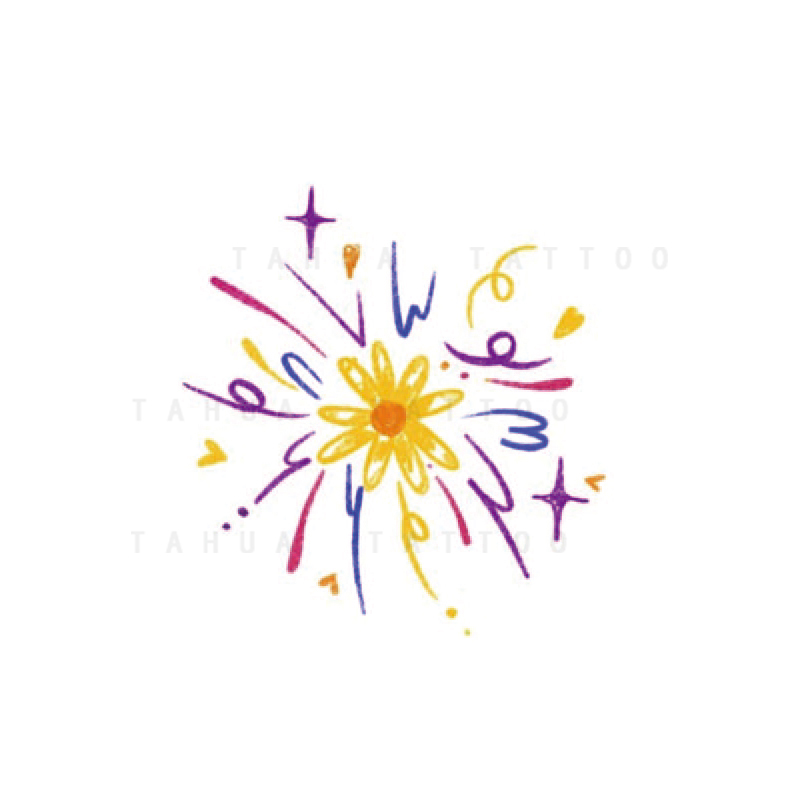 她画 创意烟花彩色纹身贴防水持久女手腕锁骨小花贴纸贴画小清新