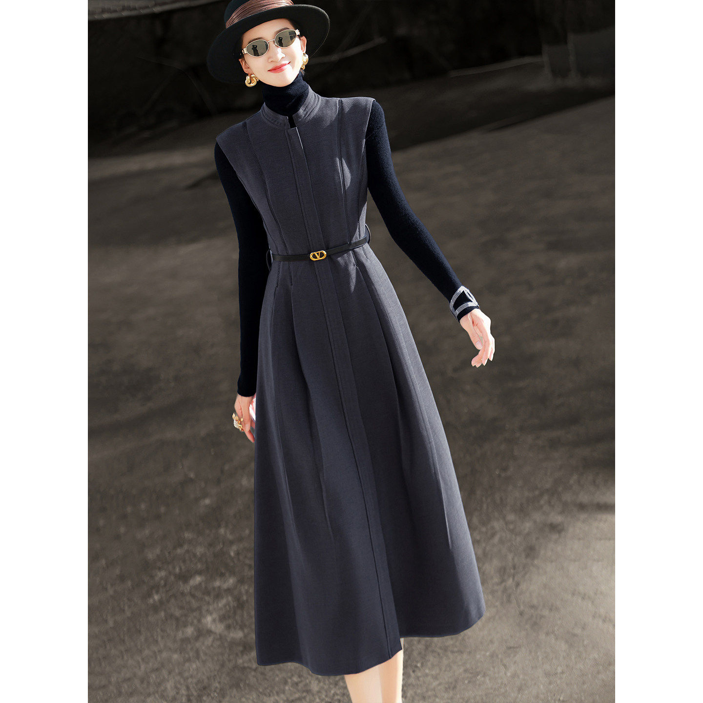 兰瑟儿2025秋季新款气质通勤羊毛打底上衣无袖背心连衣裙两件套女