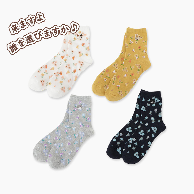 日本HAPiNS可爱猫咪花朵袜子女中筒袜ins潮百搭日系可爱花边长袜