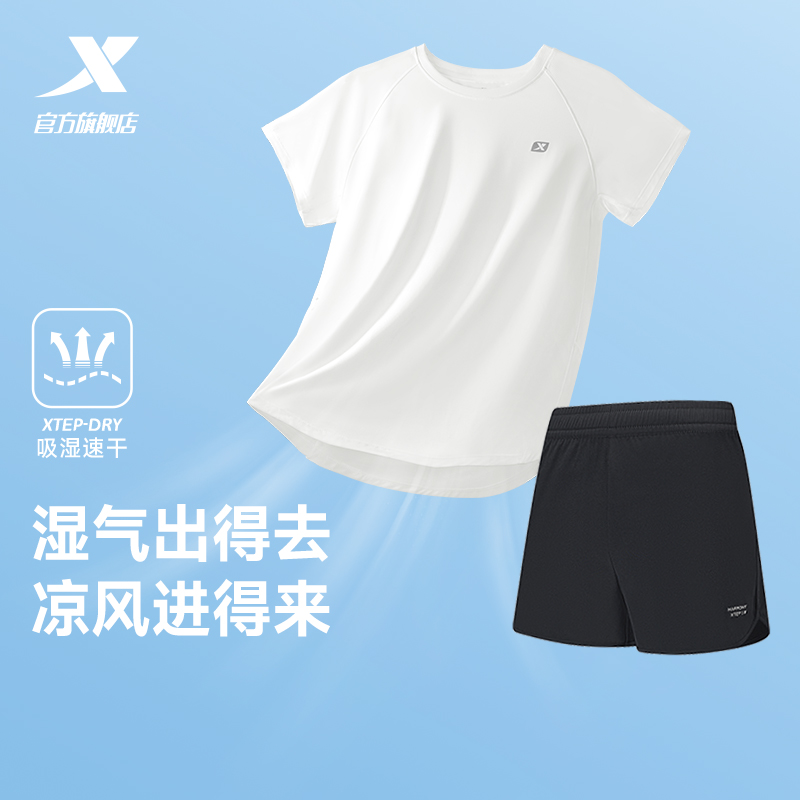 特步速干套装男女新款夏季透气健身商务运动短袖短裤长裤两件套