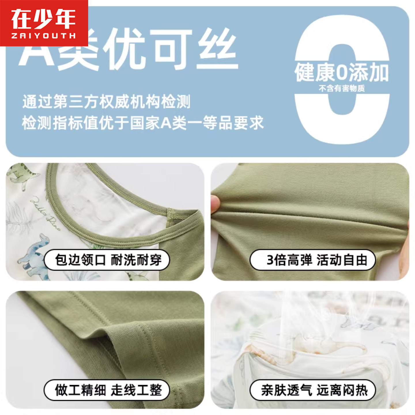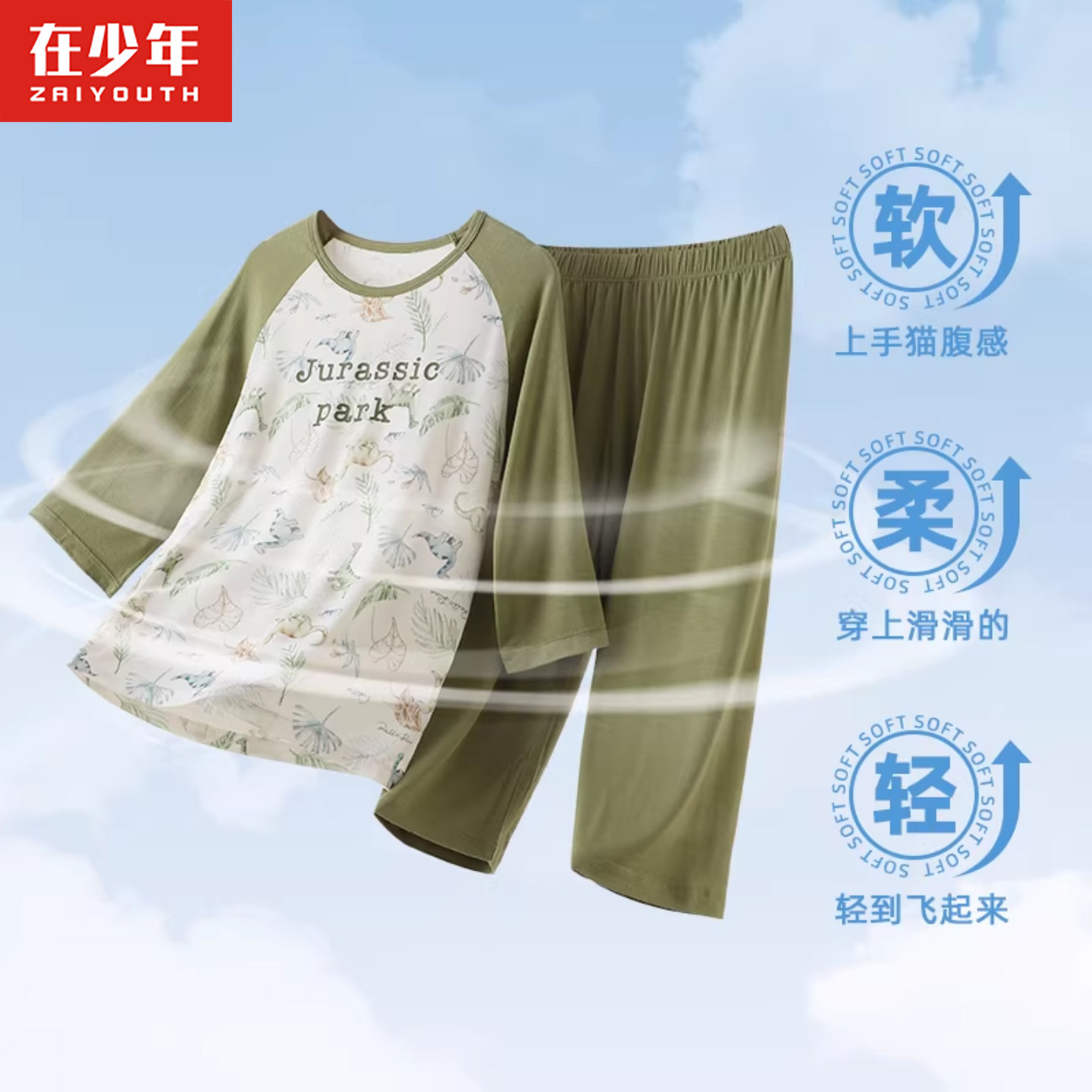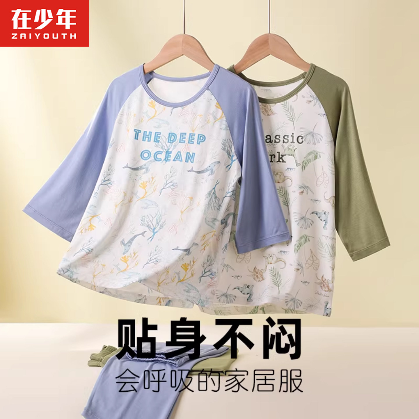 夏季儿童家居服男童莫代尔轻薄短袖套装A类抑菌中大童七分袖睡衣