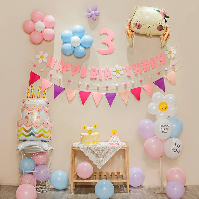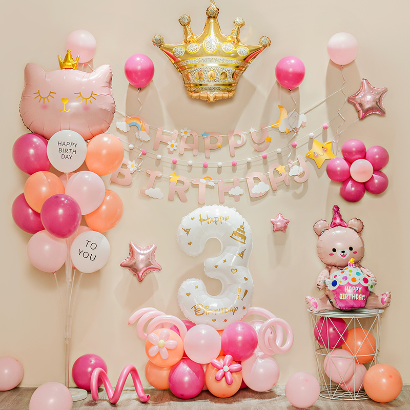网红宝宝3周岁生日装饰女孩ins气球粉色女童可爱派对场景布置用品