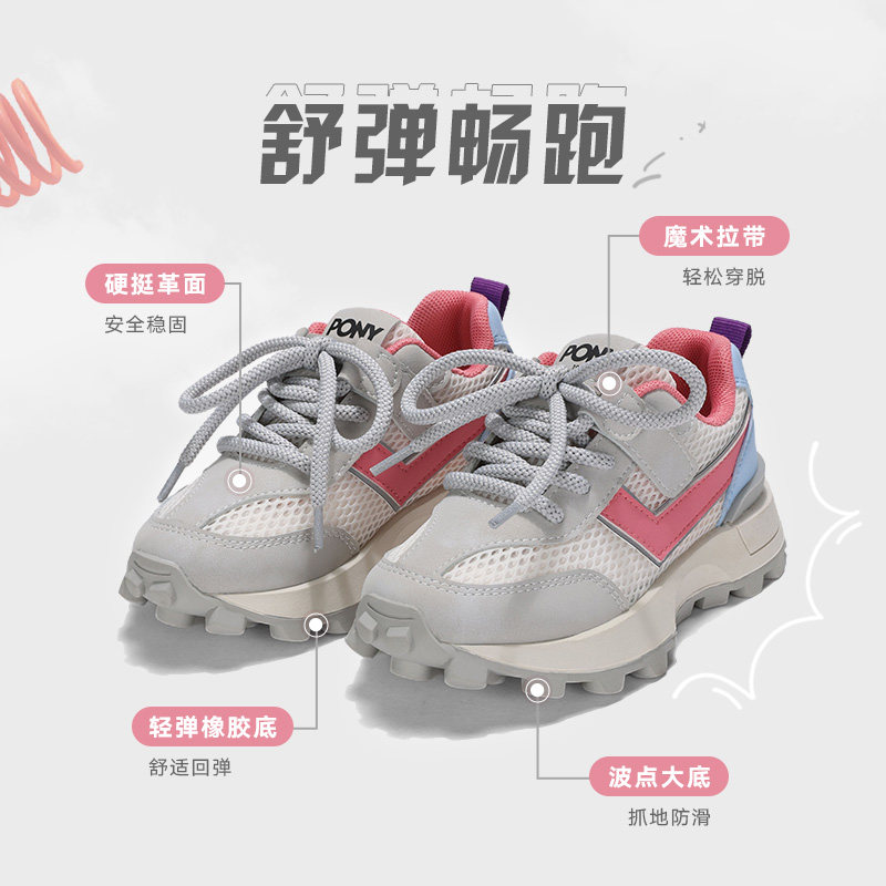 pony波尼童鞋儿童运动鞋男童女童新款大孔网面透气休闲跑步鞋减震