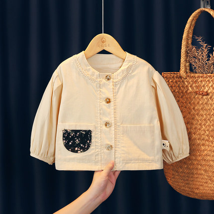女童外套2025新款秋季女孩洋气好看风衣儿童纯棉外衣宝宝早秋上衣