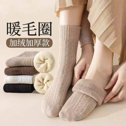 麻花毛圈袜子女士冬季加