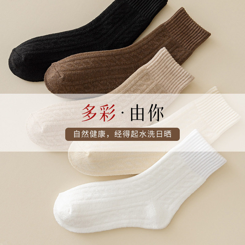 麻花毛圈袜子女士冬季加厚保暖厚袜子抗寒毛巾袜软糯纯色中筒袜