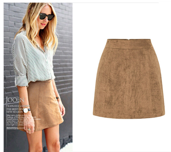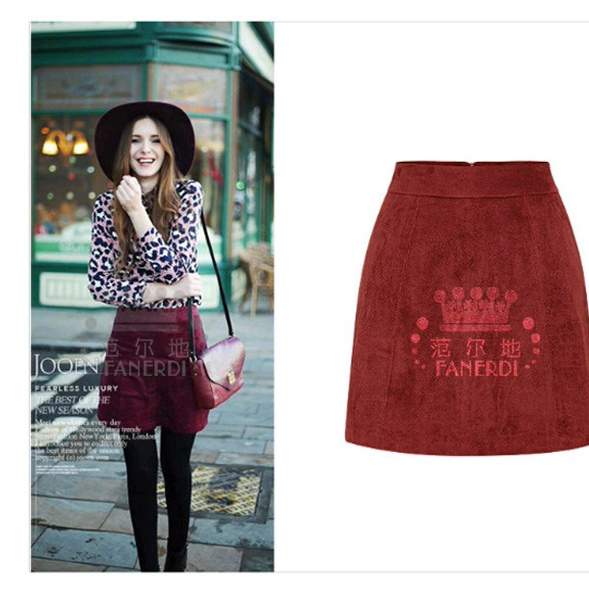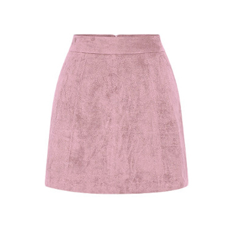 2025春秋高腰半身裙子文艺复古麂皮绒A字短裙大小码粉色女装定制