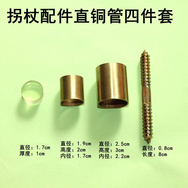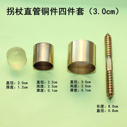 登山杖配件黄铜拐杖头连接件拐杖直管套铜螺丝拐杖手柄把手连接件