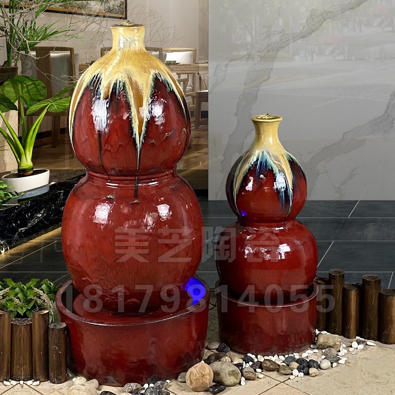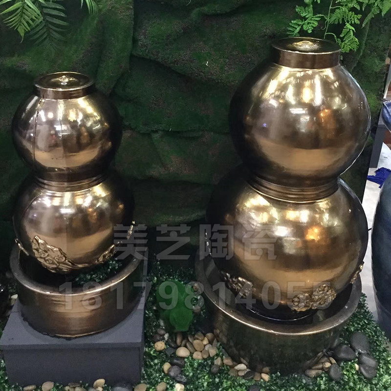 创意葫芦造型涌水缸流水生财摆件水琴加湿器土陶罐景观喷泉大花瓶