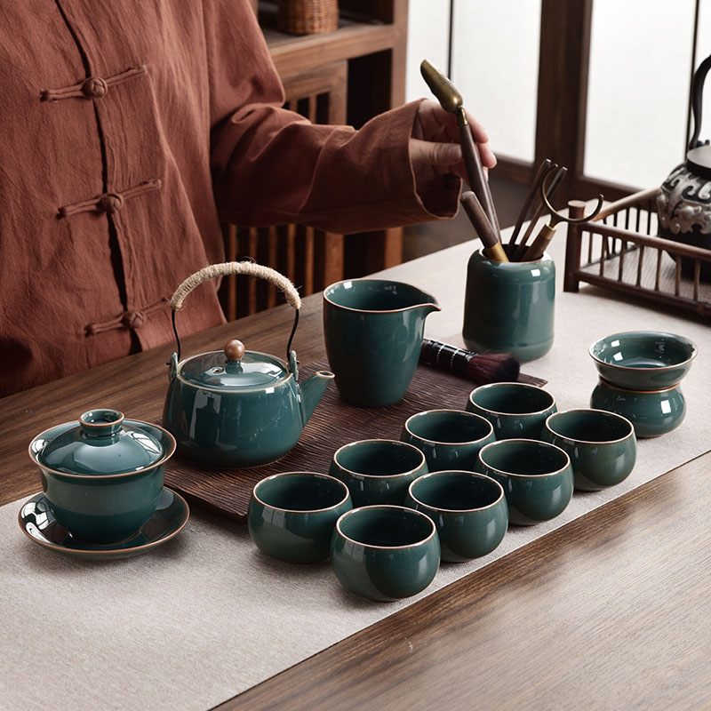 哥窑功夫茶具套装家用2025新款轻奢高档泡茶壶盖碗茶杯子茶盘整套