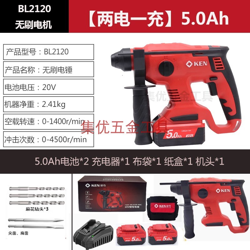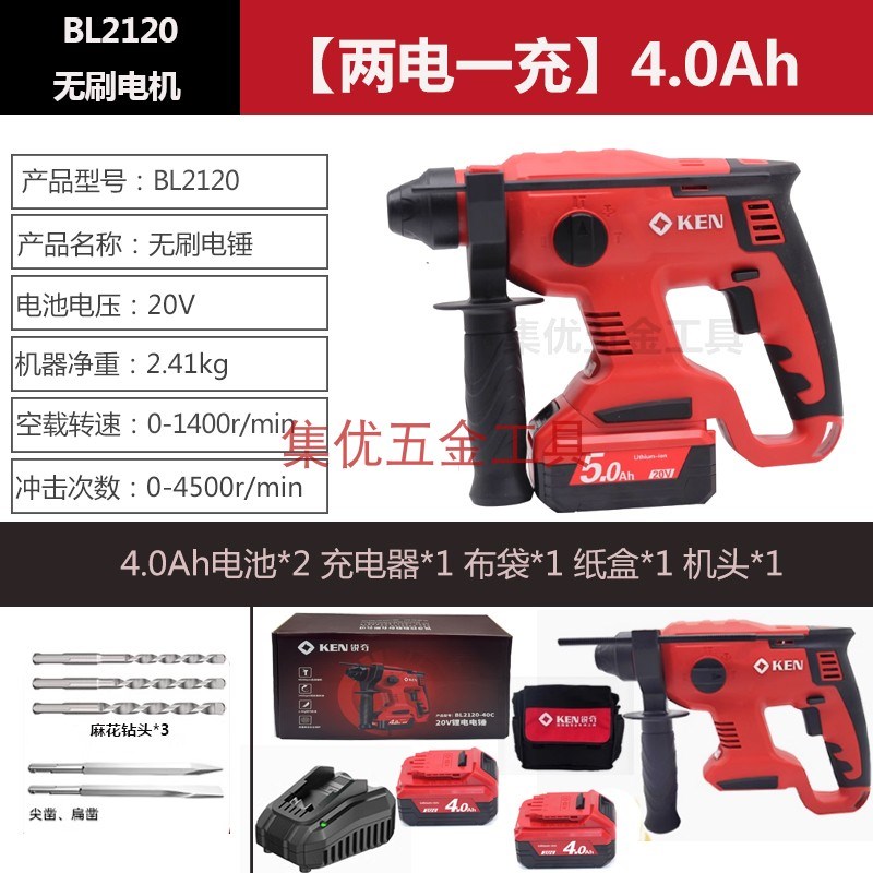 KEN锐奇无刷电锤2120充电电锤无线轻型冲击钻20V锂电池大功率电钻