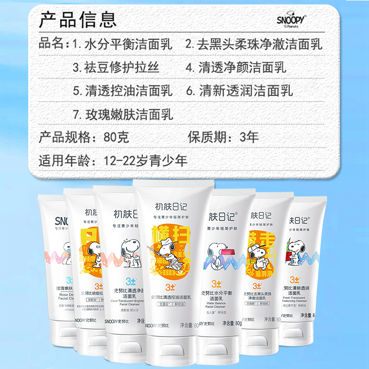 史努比洗面奶snoopy青少年防油嫩肤洁面乳男女学生专用护肤品