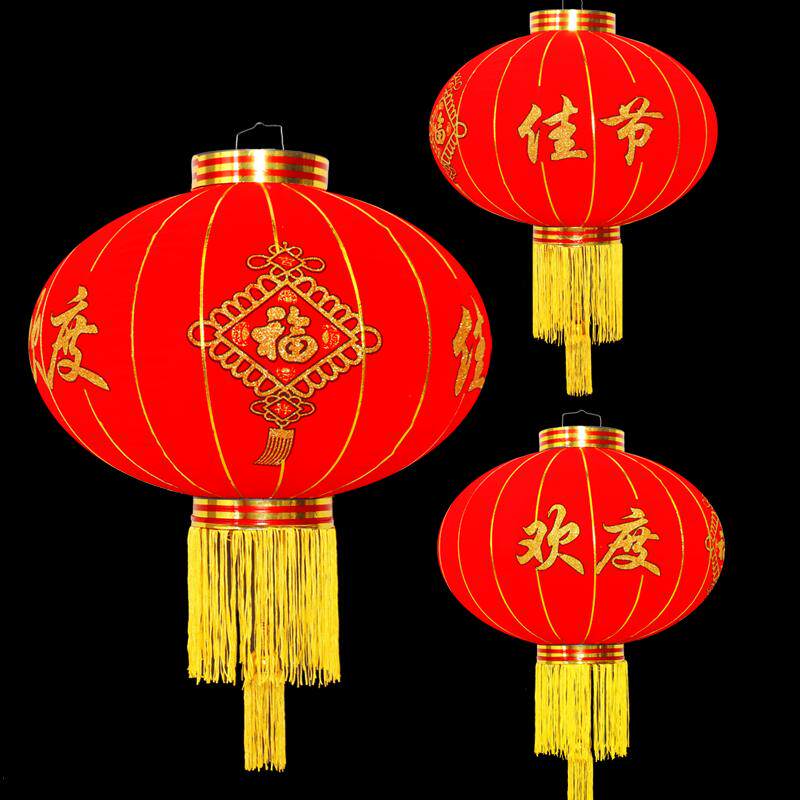 大红灯笼新年装饰春节植绒绸布灯笼阳台户外公司门口铁口灯笼定做