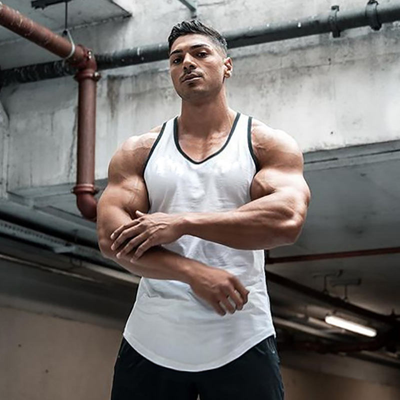 肌肉男健美健身运动背心男夏季纯棉弹力修身时尚坎肩无袖T恤