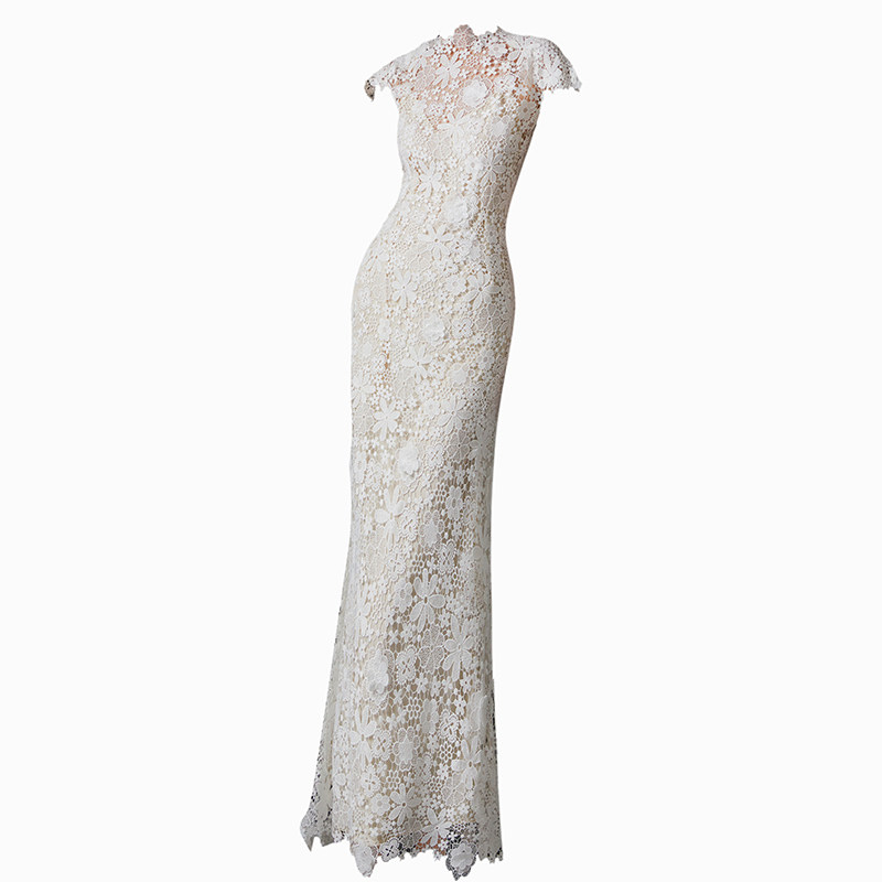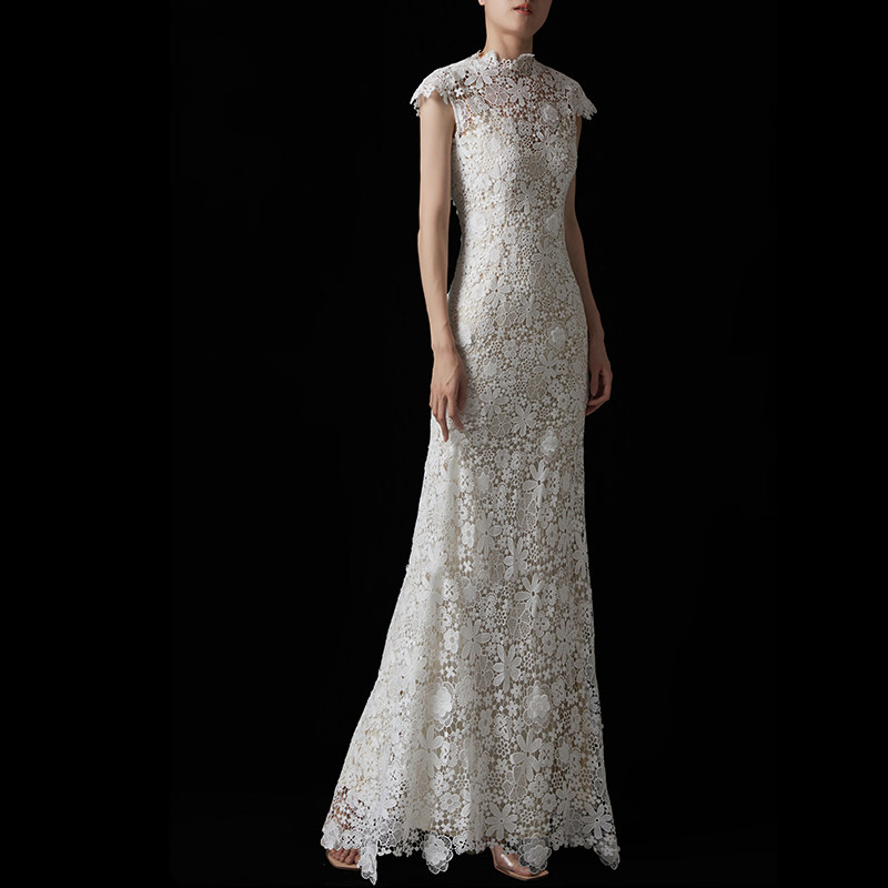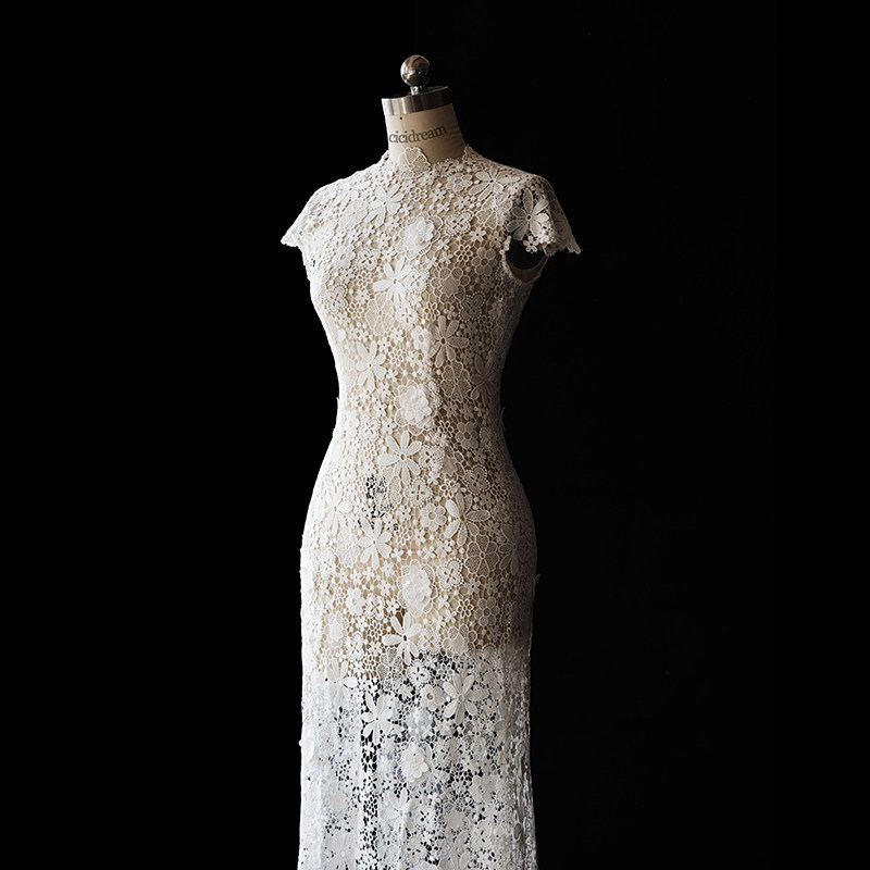 cicidream设计师全手缝轻古典花朵蕾丝婚纱轻礼服连衣长裙