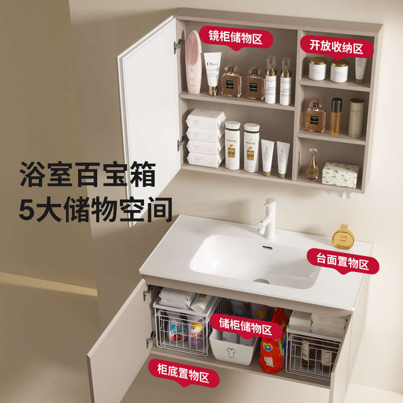 心海伽蓝奶油风浴室柜组合卫生间洗手盆柜一体陶瓷现代简约洗脸盆