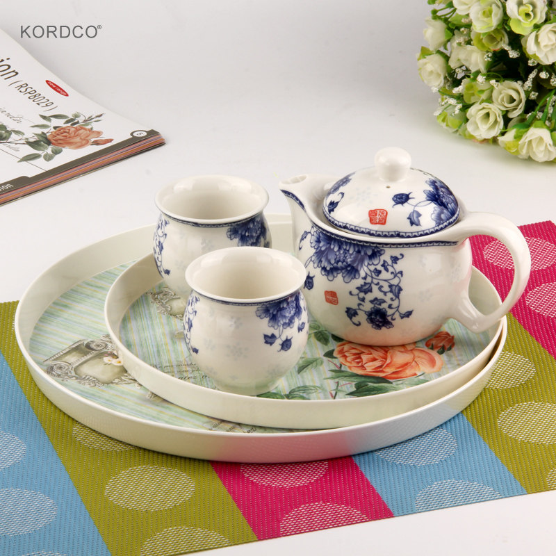 托盘圆形创意家用水杯盘欧式水杯托盘茶盘塑料果盘蛋糕点心盘客厅