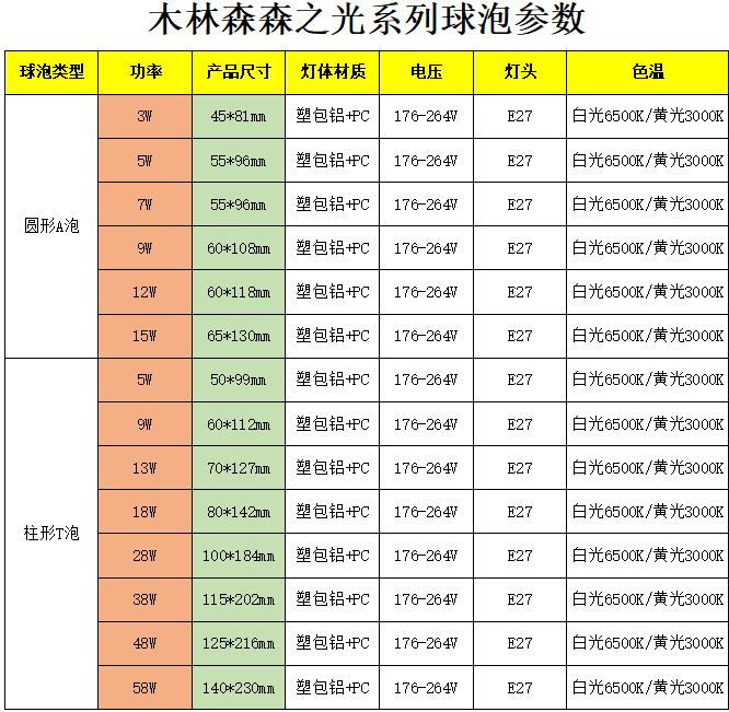 MLS木林森照明led灯泡E27螺口3W5W7W9W28W38W18w室内工厂车间球泡