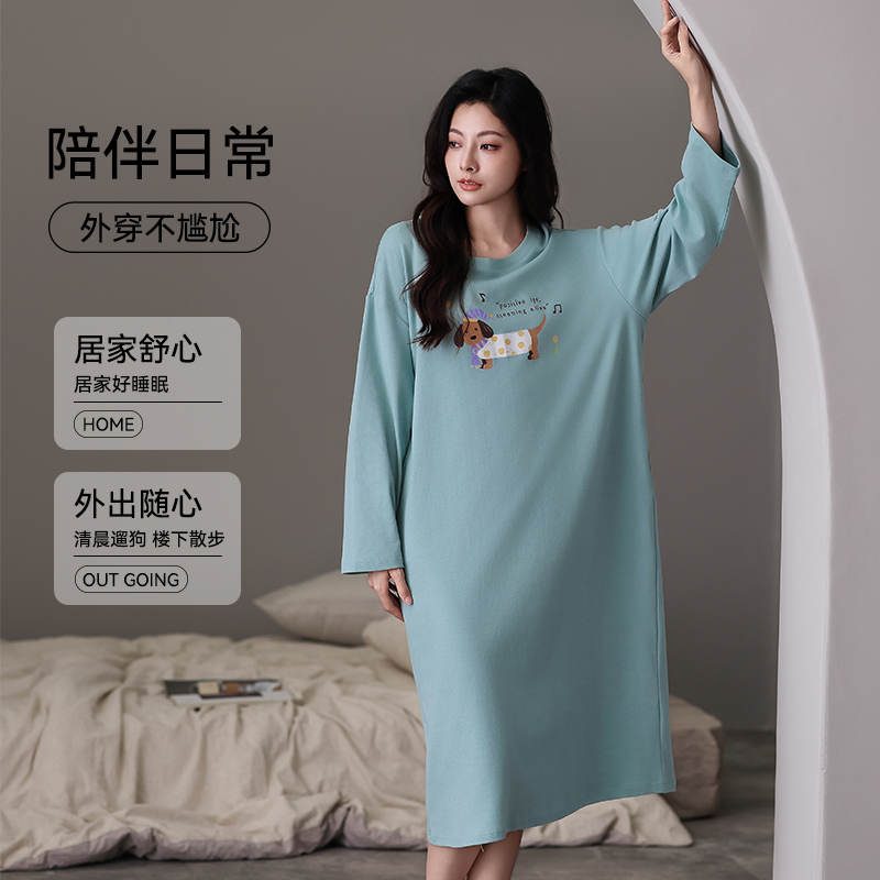 猫人纯棉睡裙女款秋冬季2025新款长袖女士睡衣大码连衣裙子家居服