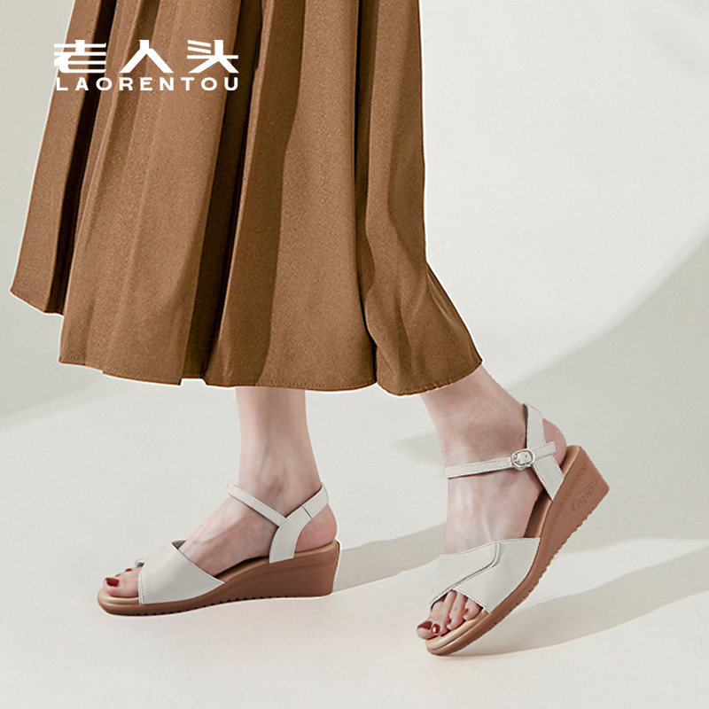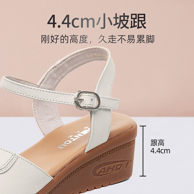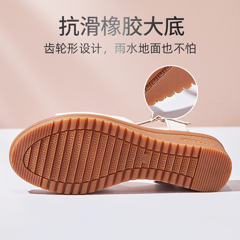 百搭防滑真皮坡跟平底凉鞋女