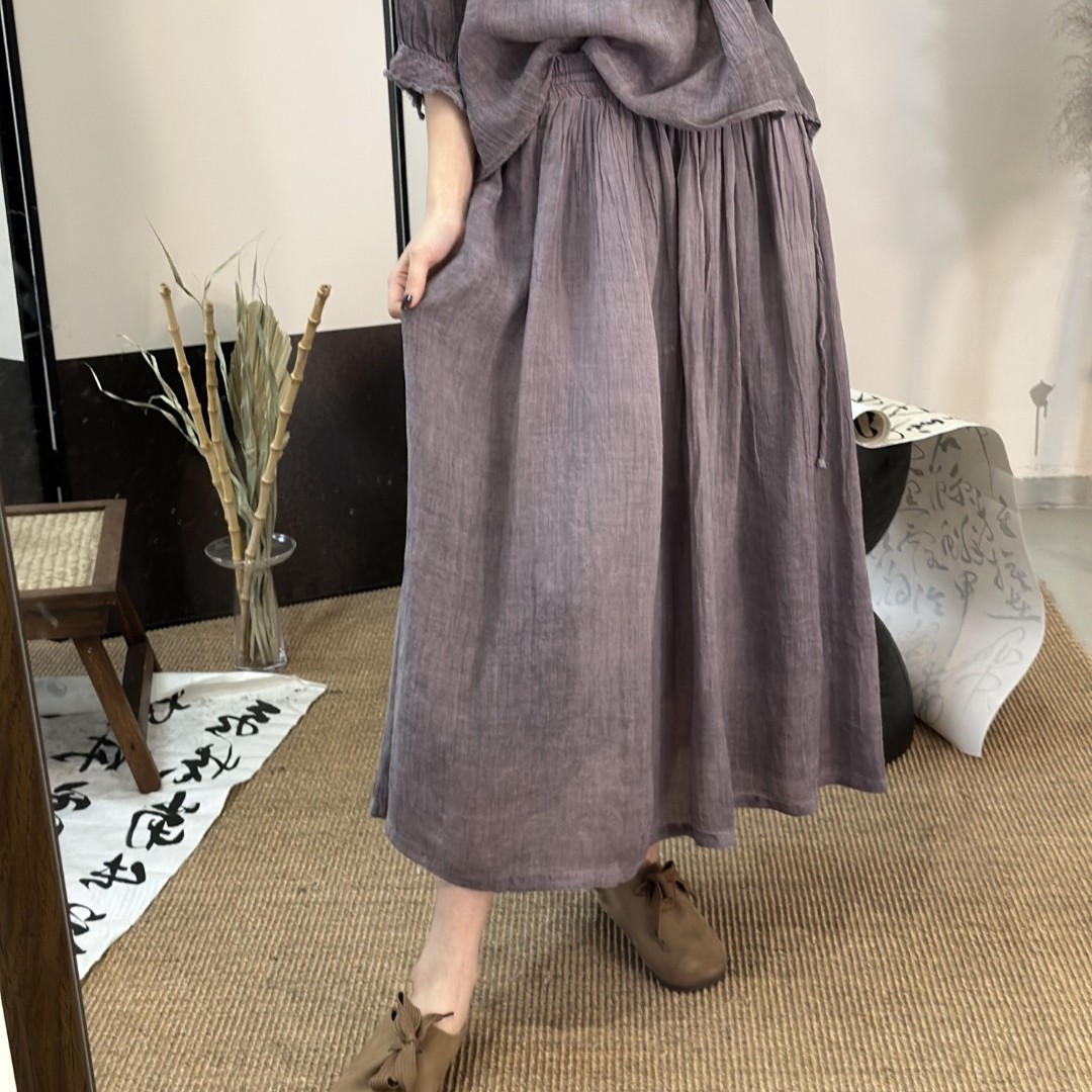 扎染苎麻松紧系带显瘦半身裙