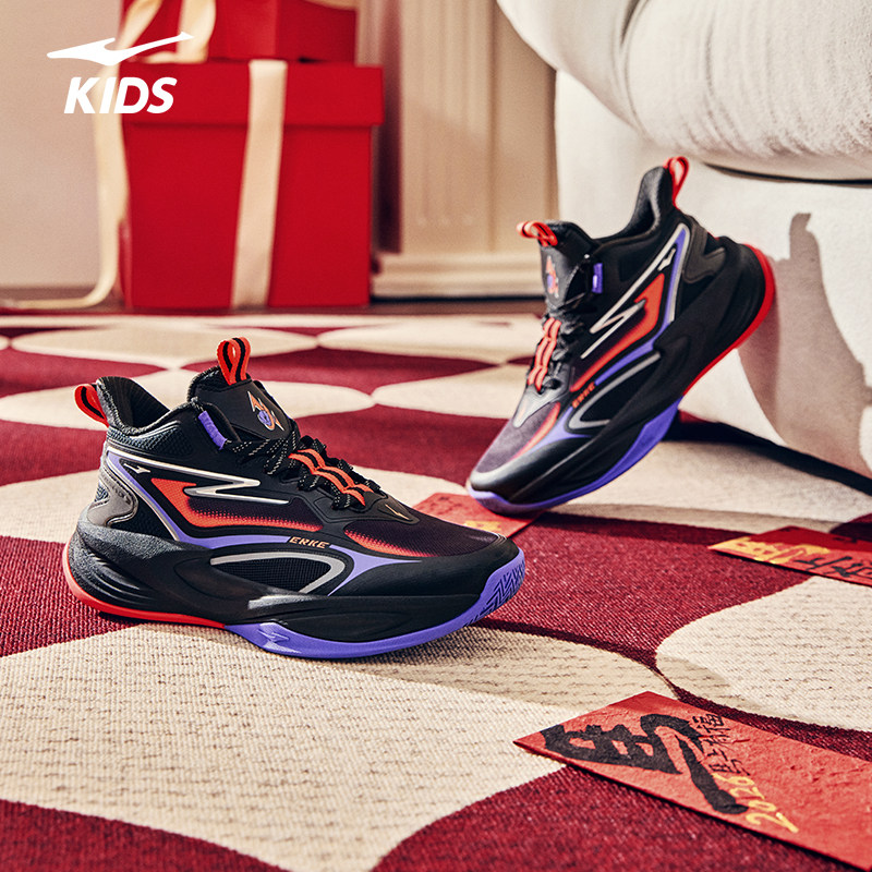 鸿星尔克童鞋男童儿童篮球鞋实战新年款红色防滑学生缓震运动鞋子