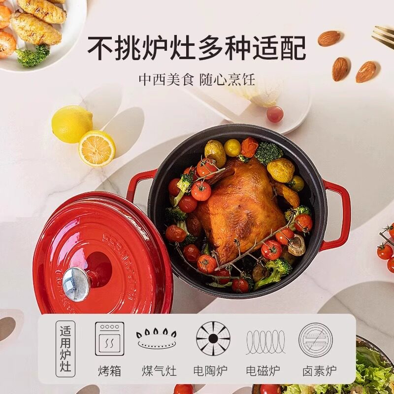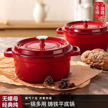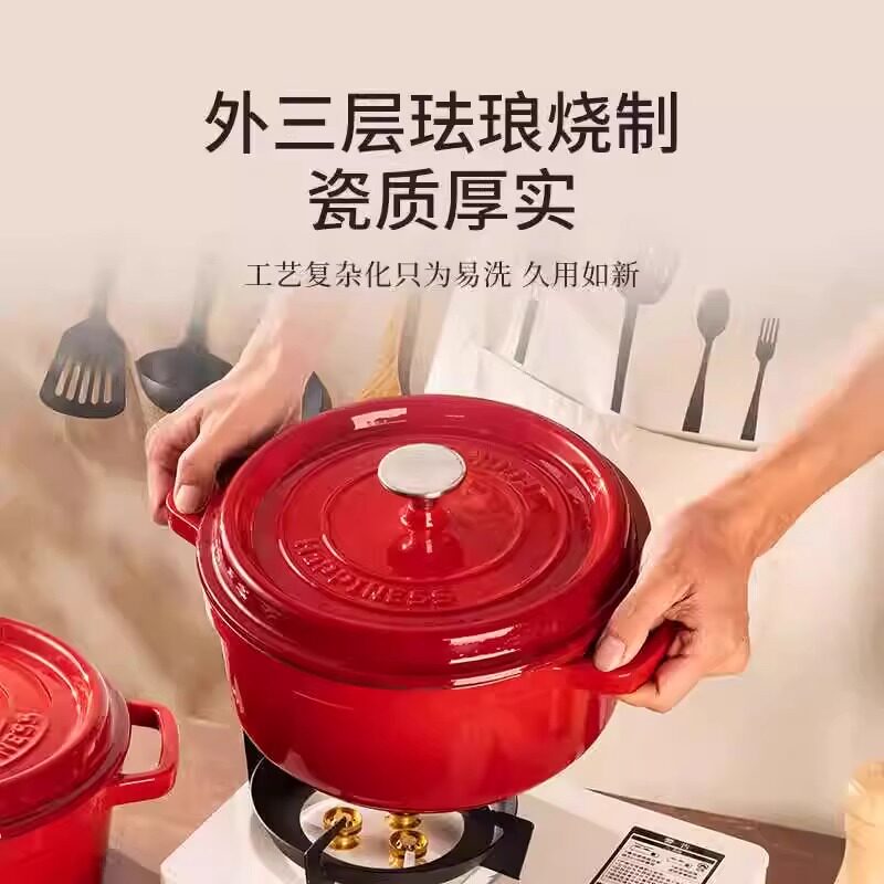 小幸福铸铁24cm铸铁锅珐琅锅家用炖锅炖盅焖烧锅电磁炉不粘锅汤锅
