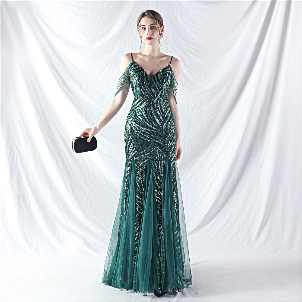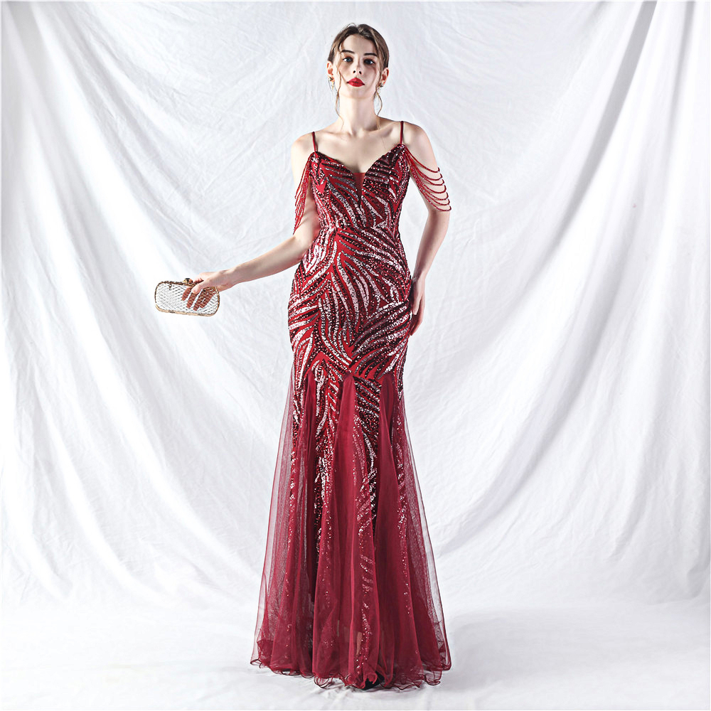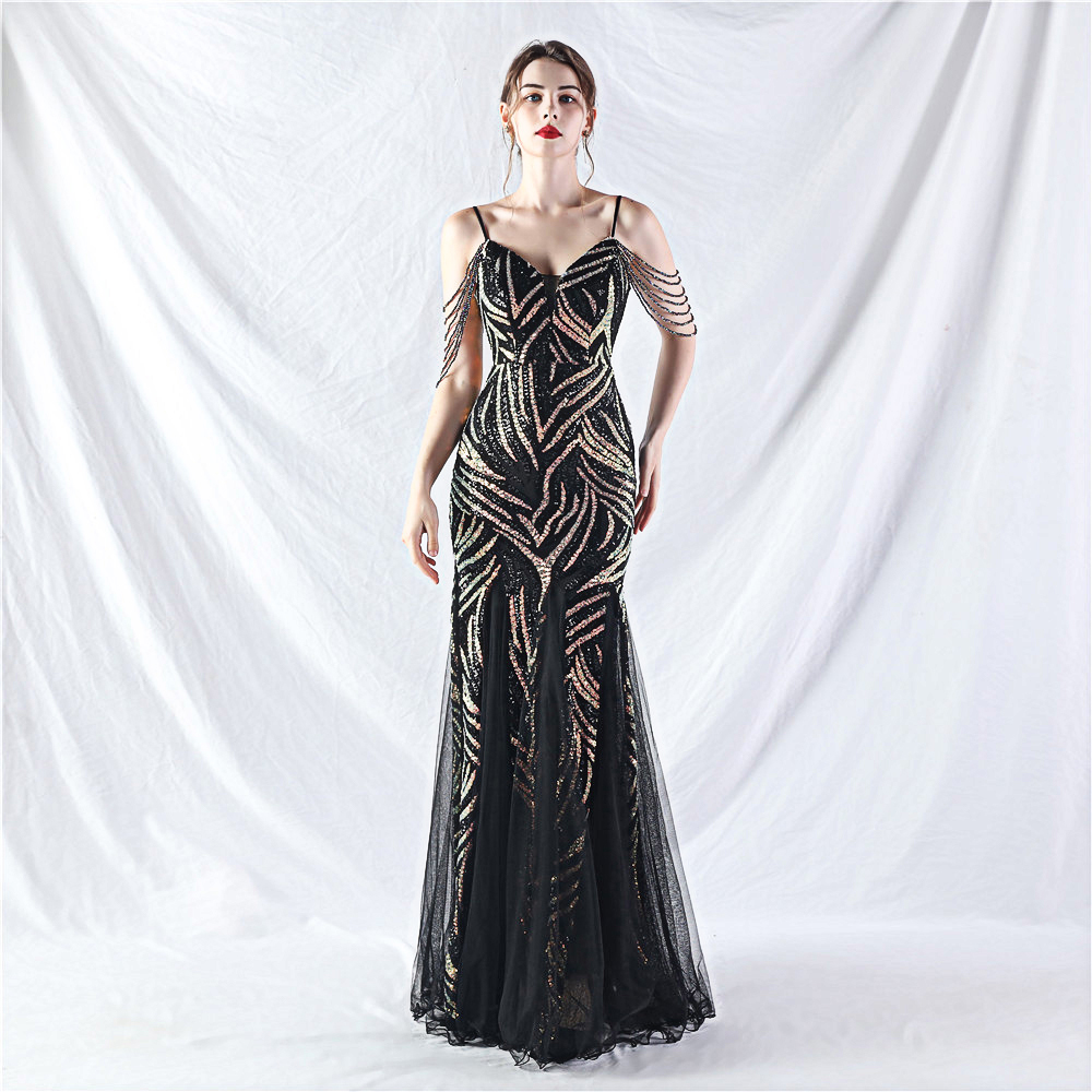 晚礼服女法式高级感名媛气质宴会轻奢修身超仙爆闪长款吊带连衣裙