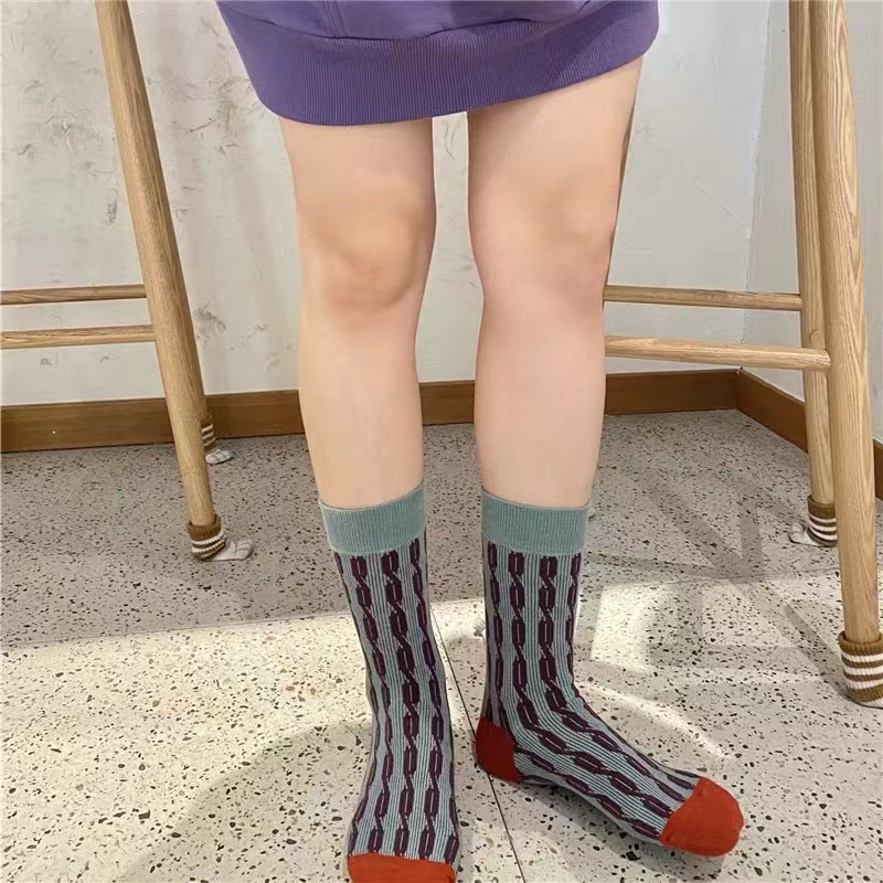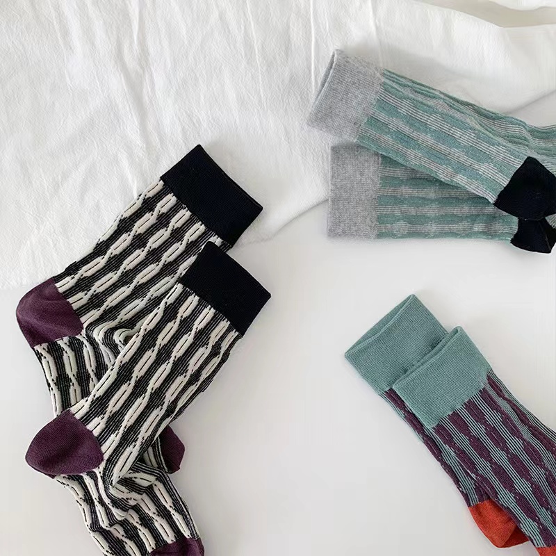 撞色麻花立体浮雕女士复古风棉质中筒棉袜韩国ins春季复古森系透