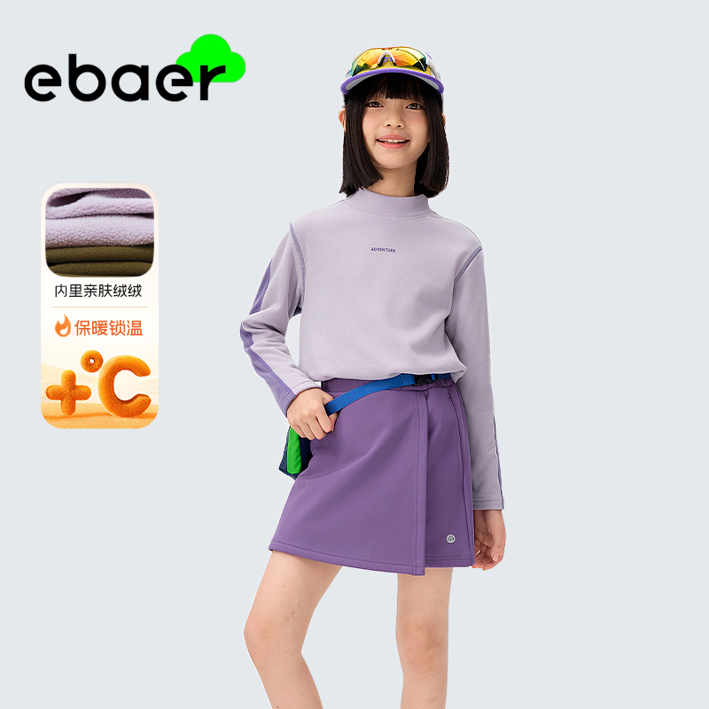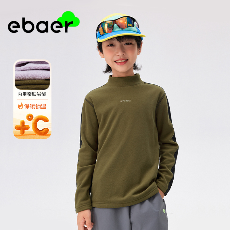 【轻暖牛奶皮】ebaer儿童加绒保暖打底衫2025冬装新款男女童抑菌T
