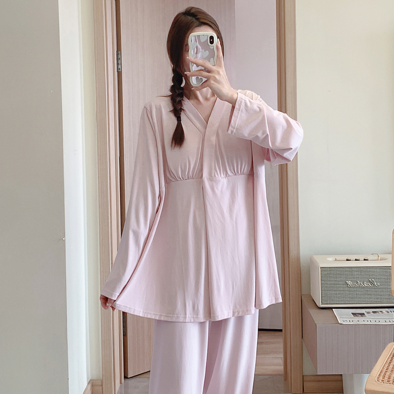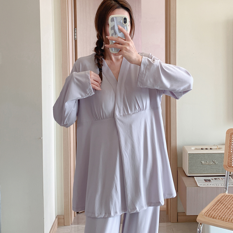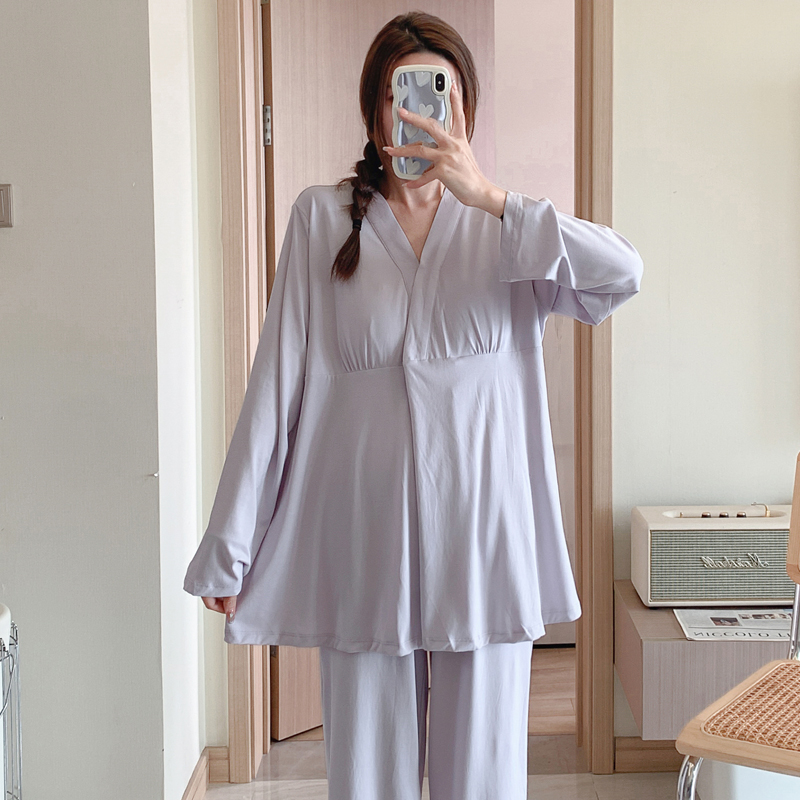 带胸垫月子服莫代尔春秋产后孕妇睡衣加肥大喂奶哺乳家居服200斤